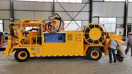 5.在正常噴射施工中,電動機(jī)驅(qū)動它馳騁在工地上。即便在電力中斷的情況下,柴油機(jī)也能短暫地驅(qū)動泵送系統(tǒng),讓噴射機(jī)械手以較慢的速度進(jìn)行各種操作,確保施工的連續(xù)性。